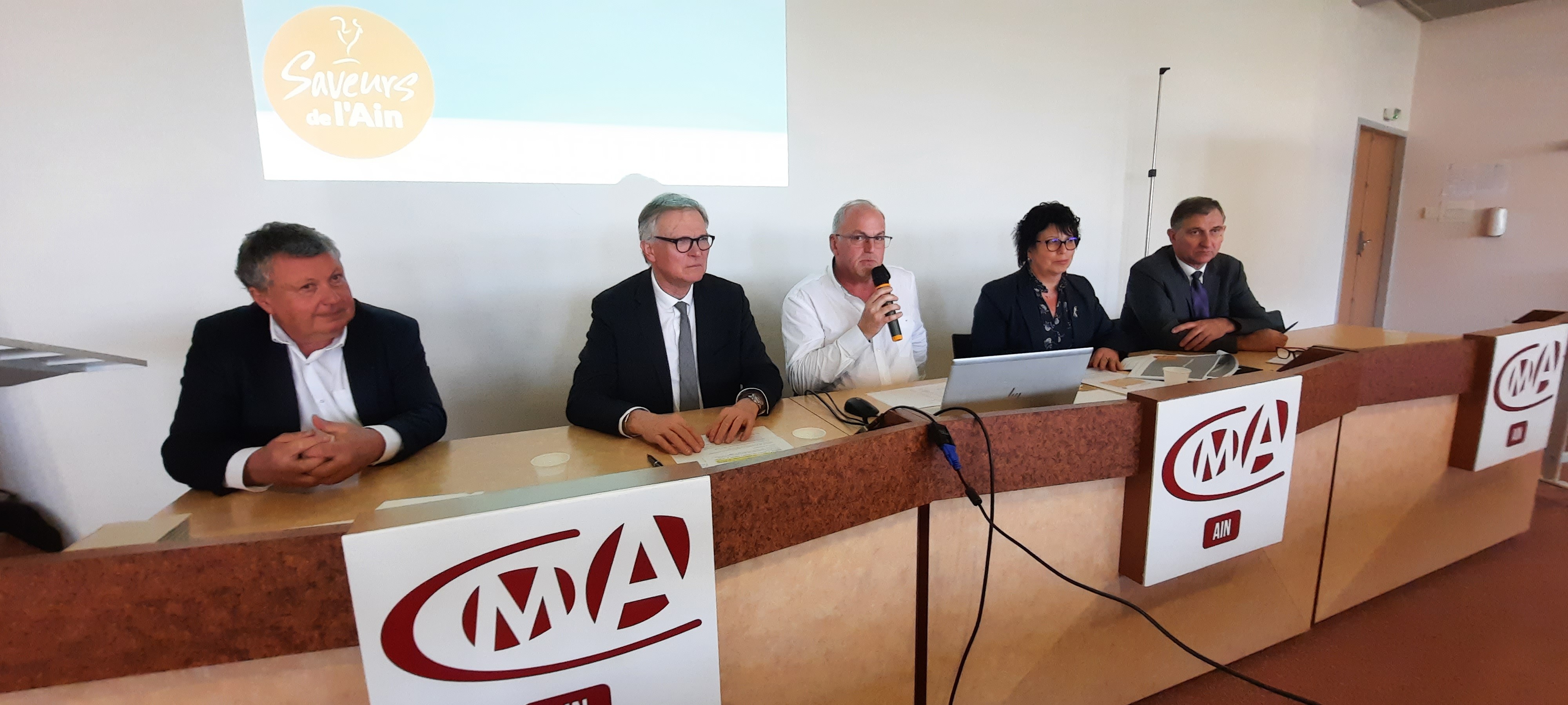 L’assemblée générale de Saveurs de l’Ain a eu lieu l'après-midi dans les locaux de la Chambre de métiers et de l’artisanat de l’Ain, qui soutient la marque avec les deux autres chambres consulaires du département : Chambre d’agriculture et Chambre de commerce et d’industrie. Pour rappel, Saveurs de l’Ain, c’est la marque du patrimoine culinaire et de la gastronomie de l’Ain, portée par le Département, sous l’égide d’Aintourisme. Une marque qui monte en puissance d’années en années. En 2022, la barre des 400 adhérents devrait être franchie (388 à ce jour, dont 106 producteurs et 97 restaurateurs, mais aussi artisans des métiers de bouche, entreprises artisanales de fabrication, revendeurs, organisateurs d’évènements, etc.). Les atouts de la marque sont multiples. Elle fédère tous les acteurs œuvrant pour la gastronomie, valorise le patrimoine culinaire, donne un « coup de pouce » à la commercialisation des produits de nos terroirs, conforte le développement économique des ressortissants des chambres consulaires, créée une offre touristique transversale autour du patrimoine culinaire et renforce l’image de destination gastronomique du territoire. Patrice Fontenat, président de la CCI de l’Ain, s’est réjoui de l’augmentation significative du nombre d’adhérents : « C’est un bon marqueur pour pouvoir progresser dans cette période difficile. On est vraiment dans un circuit vertueux », tout en saluant le partenariat signé le jour même avec l’enseigne Metro Viriat qui augure d’une belle valorisation des produits Saveurs de l’Ain (plus de 30 références en rayons à ce jour). L’objectif étant d’étendre ce partenariat aux magasins d’Annemasse, Gerland et Vaulx-en-Velin. Des propos appuyés par le président de la Chambre d’agriculture, Michel Joux, qui a rappelé la nécessité de « trouver de vraies solutions pour garder notre autonomie alimentaire », saluant par la même occasion le succès des Saveurs de l’Ain lors du Salon de l’agriculture, vitrine exceptionnelle pour nos producteurs et produits d’exception.